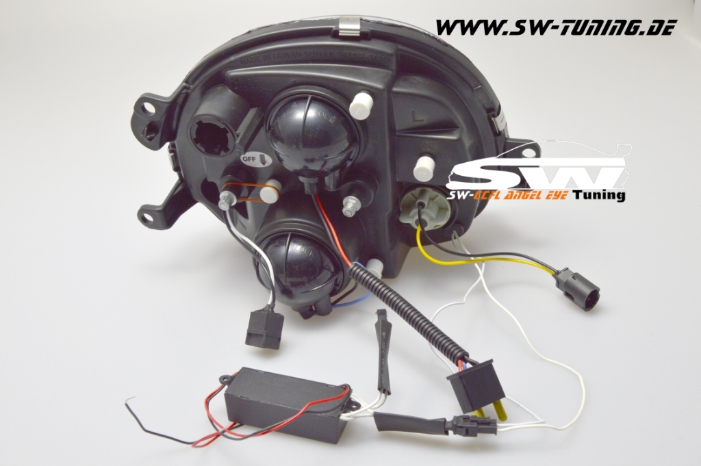2 CCFL-Standlichtringe  (CCFL=Cold Cathode Fluorescent Light Technologie leuchten die Standlichtringe 30x heller als erkömmliche Standlichtringe in kalt weiss.)
