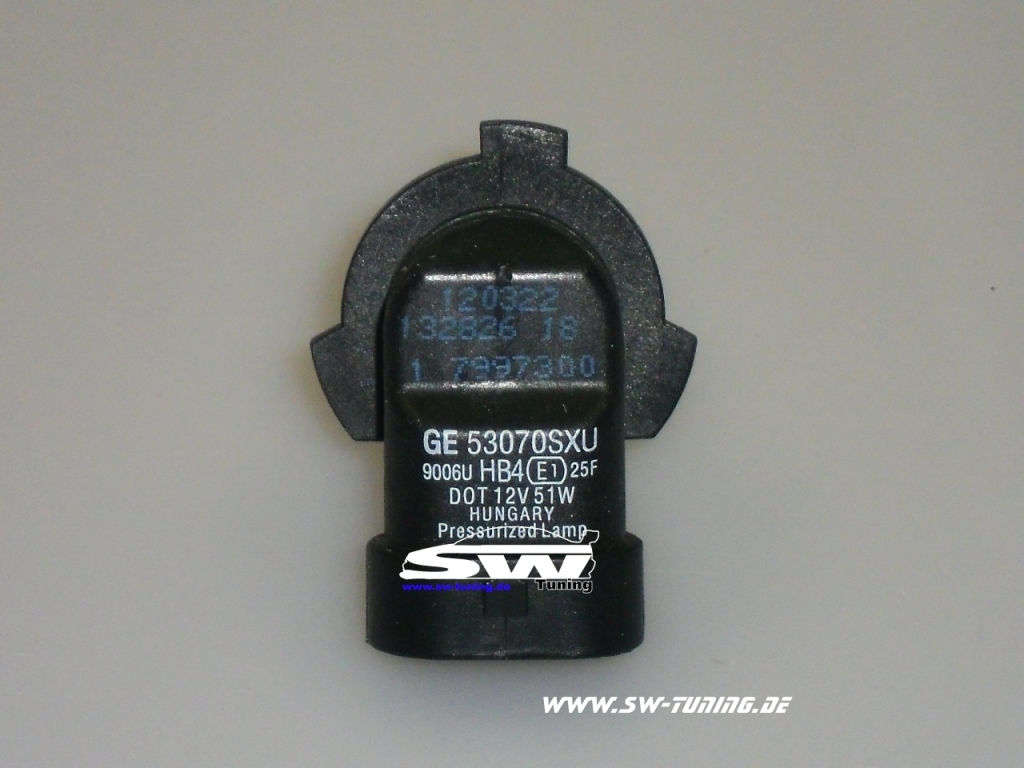 GE (General Electric) Megalight Ultra Lampen bis zu 90% mehr Lichtausbeute auf der Straße gegenüber normalen Standard-Halogenleuchtmittel-12V/51W HB4. Da der Glaskolben speziell mit einem blauen Ring farbbeschichtet ist erzielt man eine bessere Ausleuchtung bei Nacht, durch ein weisseres Licht gegen Standart-Halogen HB4 Lampen. Keine Fern-Ost Ware.