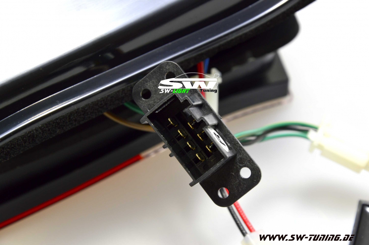 LED Standlicht/Schlusslicht. LED Bremslicht. LED Blinker. Nebelschlusslicht (Leichtet bei Standlicht mit) und Rückfahrlicht sowie inkl Reflektor. kompatibel mit Bordcomputer. mit E-Prüfzeichen / zugel im Bereich der STVZO. inkl Kabelstrang, komplettes Leuchtmittel enthalten. 1 Set bestehend aus 2 Rückleuchten inkl Innenleuchten (4teilig).