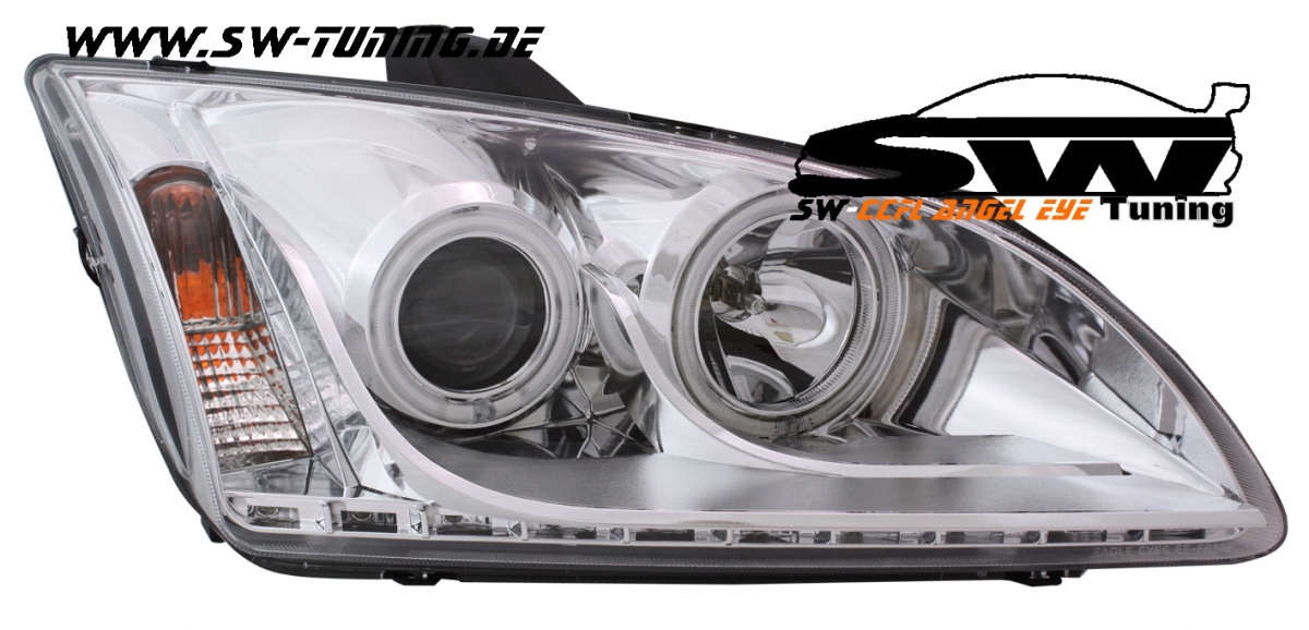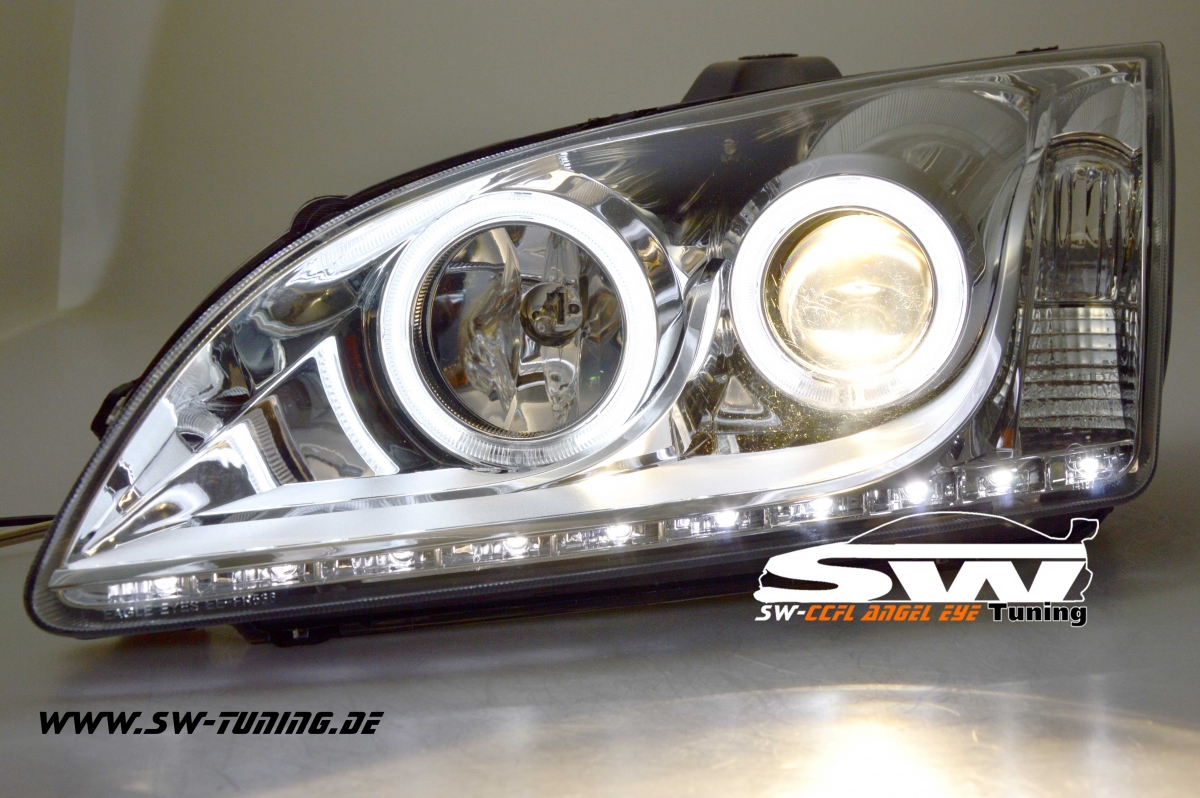 Diese Scheinwerfer sind meiner Meinung nach viel schöner als die schwarze Variante. Auf den Bildern hier sehen diese eher schlecht aus, aber ich kann jedem versichern, dass diese Chrom Scheinwerfer Real mindestens 4 fach so gut aussehen. In Kombination mit Diadem Blinker, damit man das Orange der Blinker nicht sieht, sehen diese Scheinwerfer echt hervorragend aus wenn es in Richtung "Luxury" geht. Wer sein Auto mehr in Richtung "Sport" bringen will, der soll sich mit den Schwarzen CCFL Scheinwerfern begnügen.