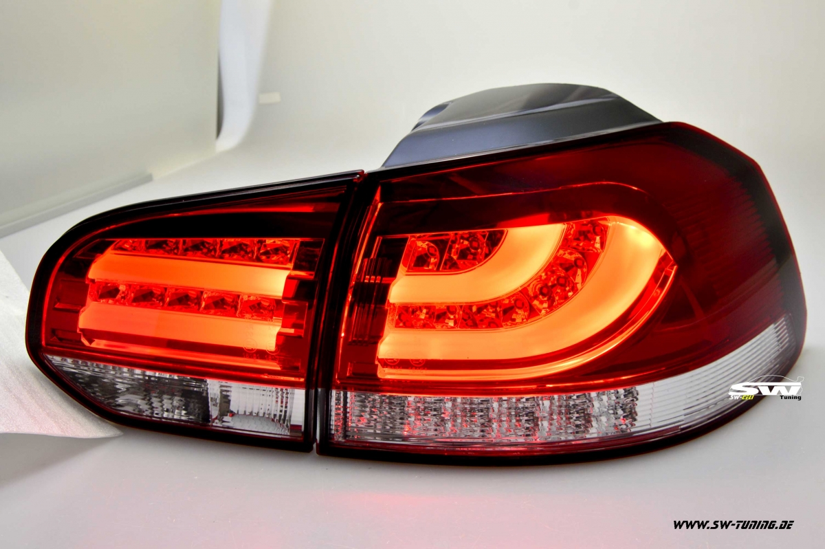 SW-Celi LED Rückleuchten für VW Golf 6 cherry red clear mit Lightbar mit LED Blinker