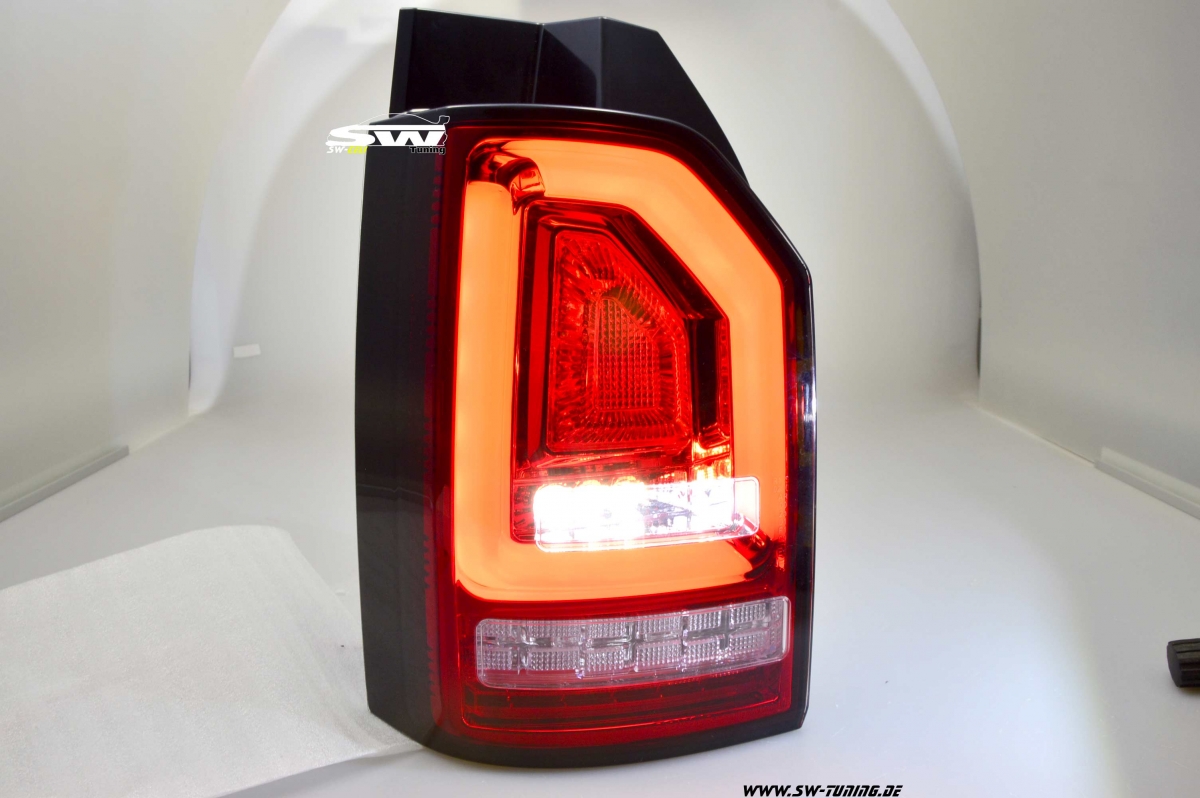 passend für: VW T6 Typ SG Caravelle, Multivan Transporter nur passend bei Fahrzeugen mit Werksseitig verbauten LED Rückleuchten. (nicht Flügeltüren, nicht für Fahrzeuge mit Werks Glühbirnen). Modeljahr: 2016-2020. Ausführung: rot/klar.