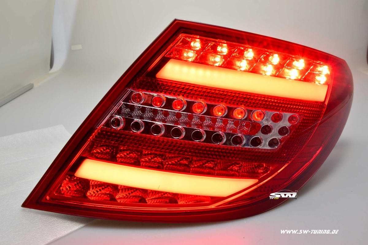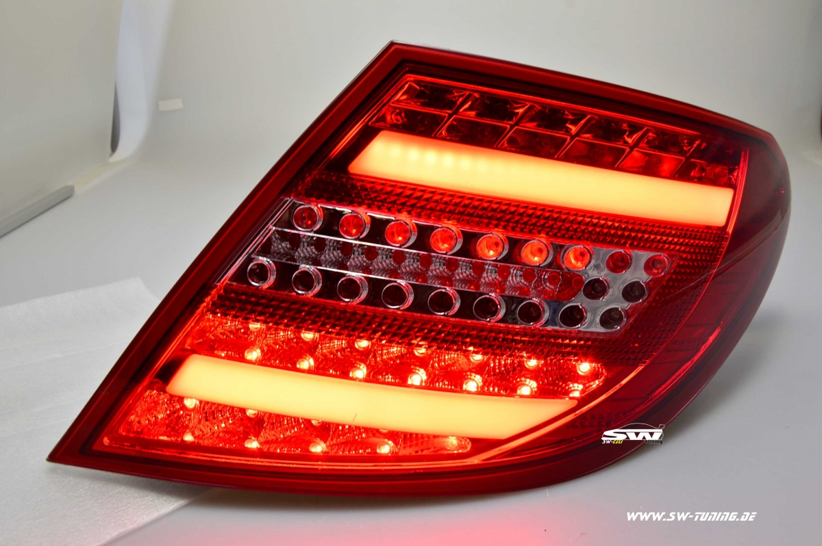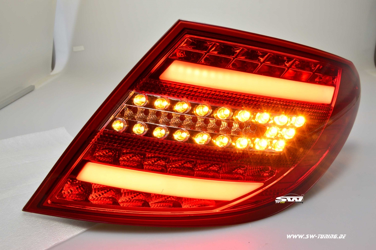 Voll LED SW-Celis LED Rückleuchten für Mercedes Benz C-Klasse W204 07-11 Limousine red/clear Lightbar im Faclift Design.