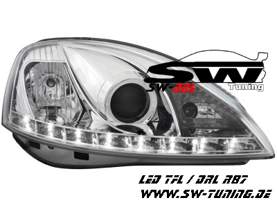SW-DRL Scheinwerfer Opel Corsa C 01-06 LED Tagfahrlicht chrome