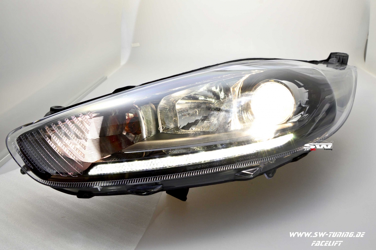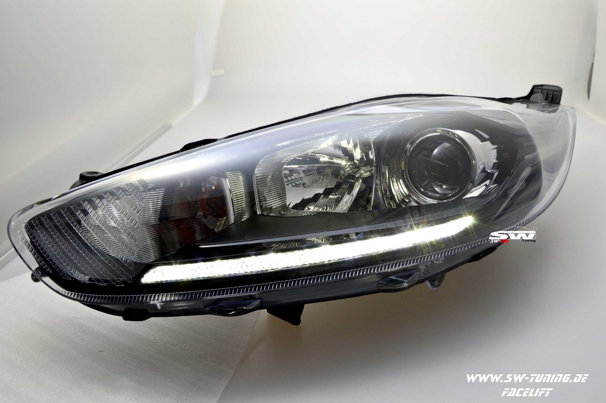 SW-DRL Scheinwerfer für Ford Fiesta Mk7 JA8 Facelift 14-17 LED Tagfahrlicht schwarz 10Pin