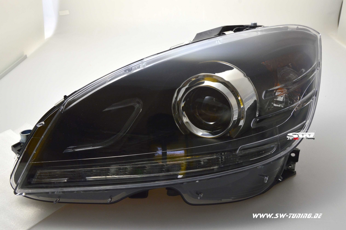 SW-DRL Scheinwerfer für Mercedes C-Klasse W204/S204 07-11 black mit LED Tagfahrlicht und LED Standlicht-Lighttube