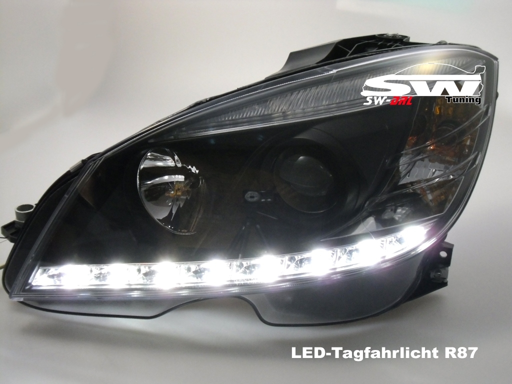 SW-DRL Scheinwerfer für Mercedes C-Klasse W204 07-11 LED Tagfahrlicht R87 black