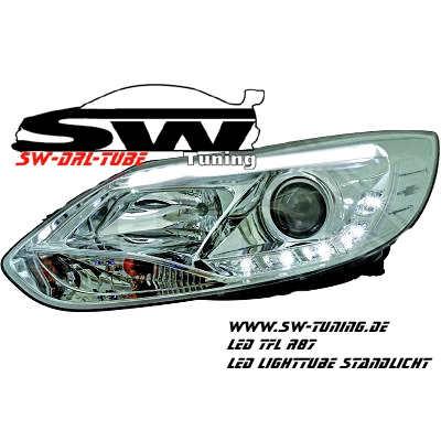 SW-DRLTube Scheinwerfer Ford Focus Mk3 DYB 11-14 LED TFL R87/ LED Lighttube chrome