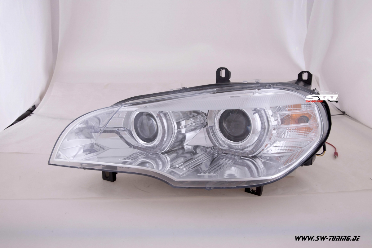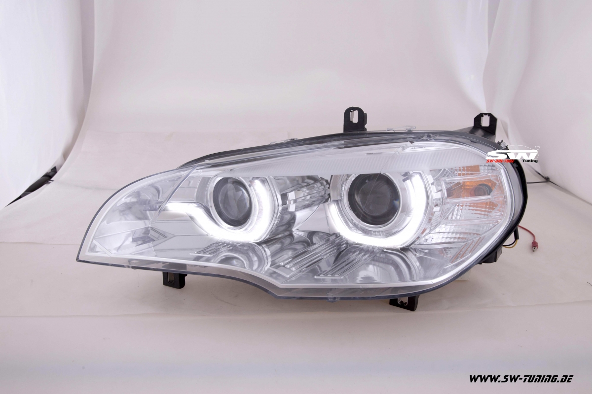 Angel Eye Xenon Scheinwerfer für BMW X5 E70 mit 2 High LED U-Tagfahrlicht-Standlicht chrom.