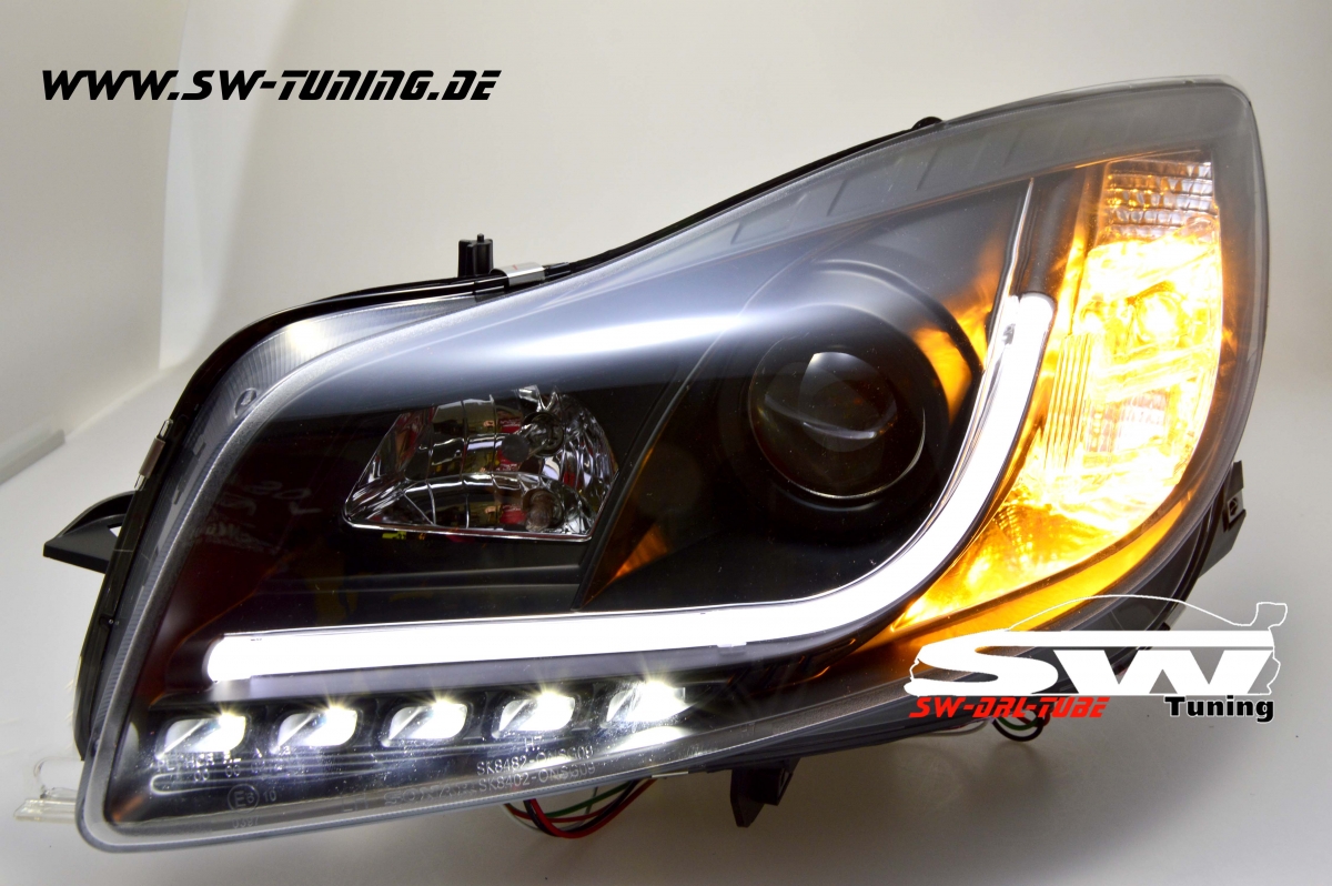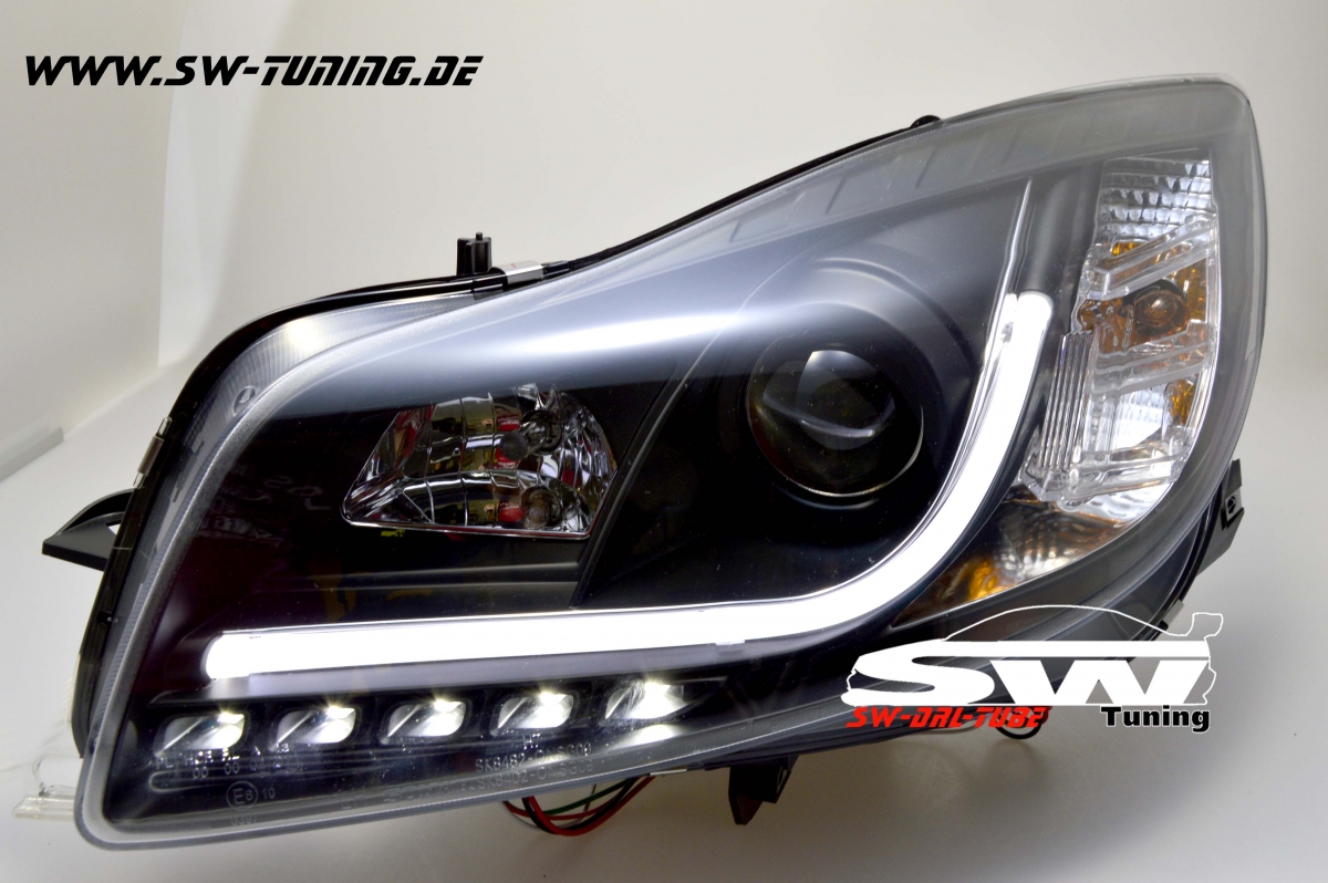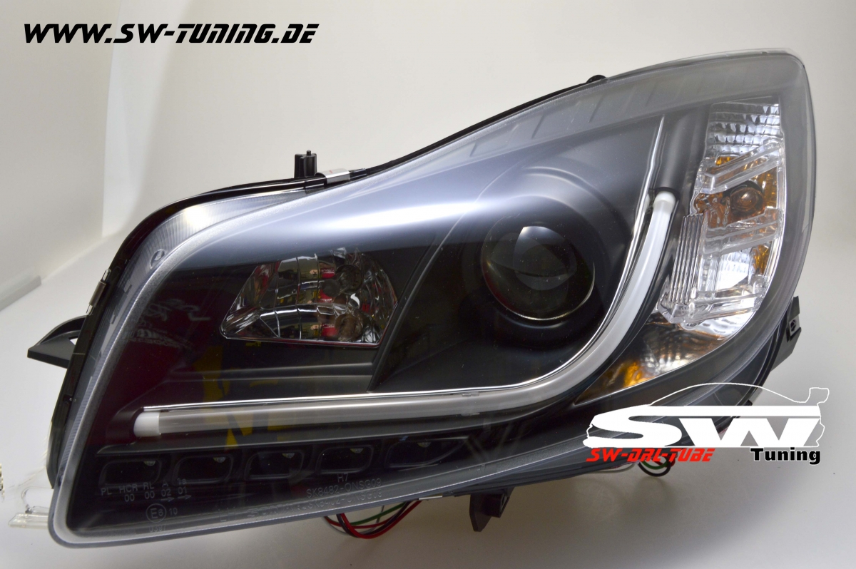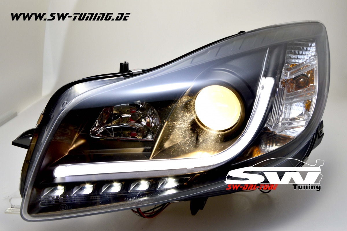 SW-DRLtube Scheinwerfer Opel Insignia 08-14 black mit LED Tagfahrlicht-Lighttube R87