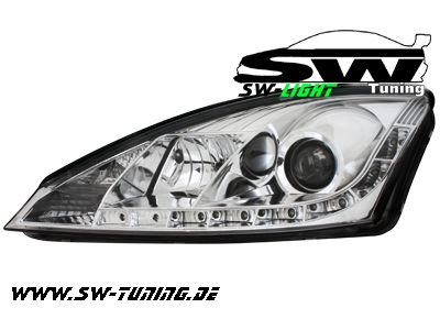 SW-Light Scheinwerfer für Ford Focus 01-04 Mk1 mit LED Standlicht in Tagfahrlicht-Optik und Eintragungsfrei