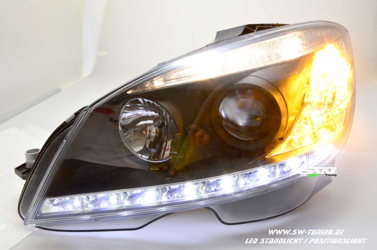 SW-Light Scheinwerfer für Mercedes C-Klasse W204/S204 07-11 black mit LED Standlicht-Leiste