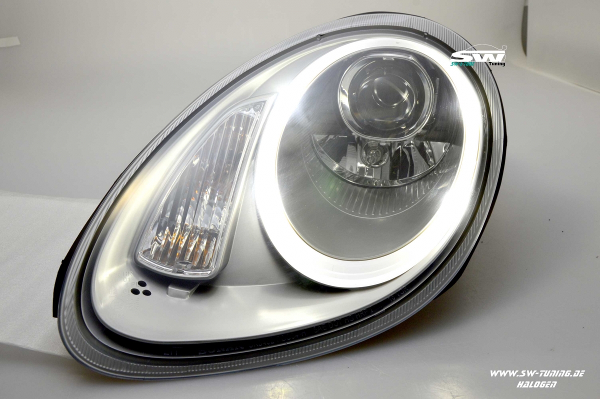 SW-Ltube Scheinwerfer für Porsche Cayman Boxster 987 2005-2008 LED Standlicht chrom im Turbo-Look.