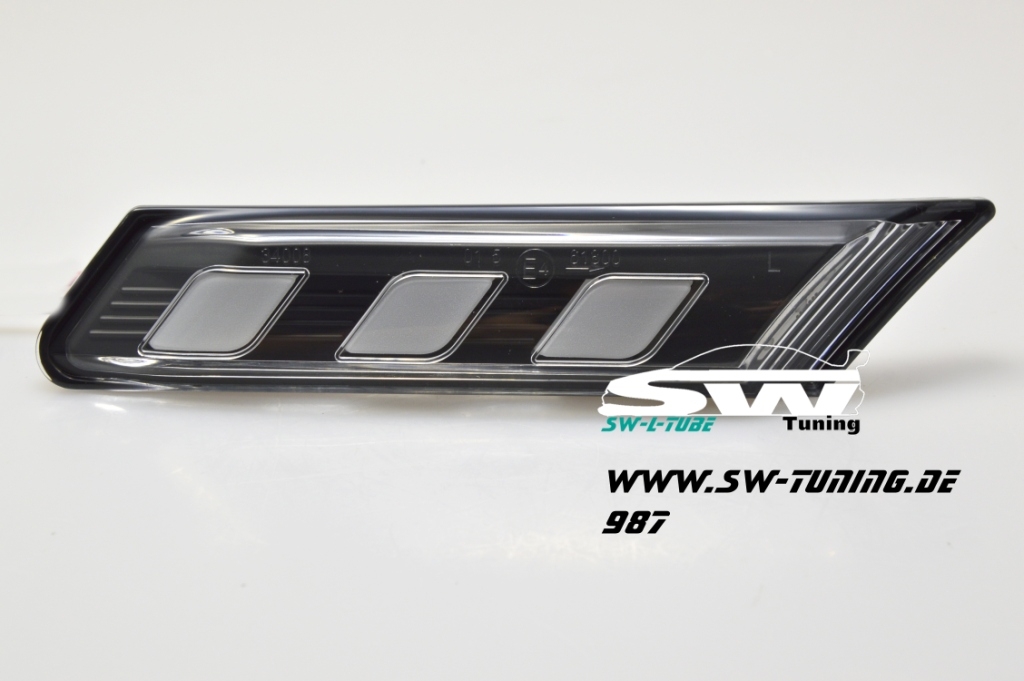 SWLtube LED Seitenblinker black für Porsche Boxster Typ 987 und Porsche Cayman Typ 987c mit Lightbar Lichtleittechnik. Zum Austausch der Original Teilenummern: ECE 987 631 033 01 (L), 987 631 034 01 (R), SAE987 631 037 02 (L), 987 631 038 02 (R)