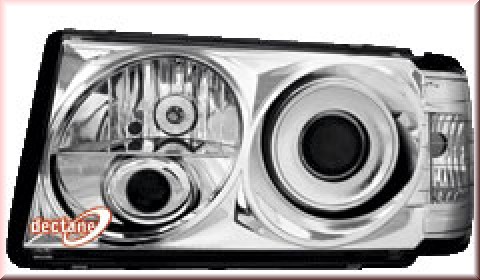Details:Baujahr: 84-93Ausführung: chromim Oneblock-Design, integrierter BlinkerNebelscheinwerfer integriertXENON-Optik-LinseLeuchtmittel: H1E-Prüfzeichen1 Set bestehend aus 2 Scheinwerfern* gemäß der STVZO muss ein Scheinwerfer mit Elektrischer Leuchtweitenregulierung ausgestattet sein sofern das Serienfahrzeug mit dieser ausgestattet war (ab 91)Wir weisen darauf hin, dass einige Scheinwerfer nicht mit dieser Funktion ausgestattet sind, obwohl sie mit einem E-Prüfzeichen versehen sind(E-Prüfzeichen bezieht sich auf die lichttechnische Prüfung)
