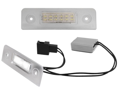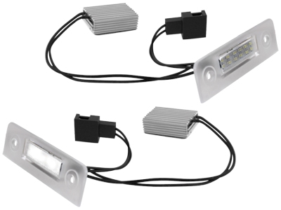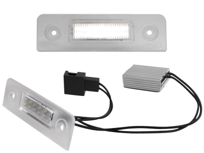 The car-specific solution for the perfect plate illumination by LED Only in exchange for Original Part No: 1Z0 943 021 B models: Skoda Octavia II limousine Typ1Z 2008-2012 (from date 01.10.08), Skoda Roomster Type 5J 2006-2010 (from VIN .... 5J9B601303 and 5J95035933) compatible with on-board computer compatible with original connector / no conversion necessary LED assembly per piece: 18 LED 1 set of 2 pcs with E-Mark