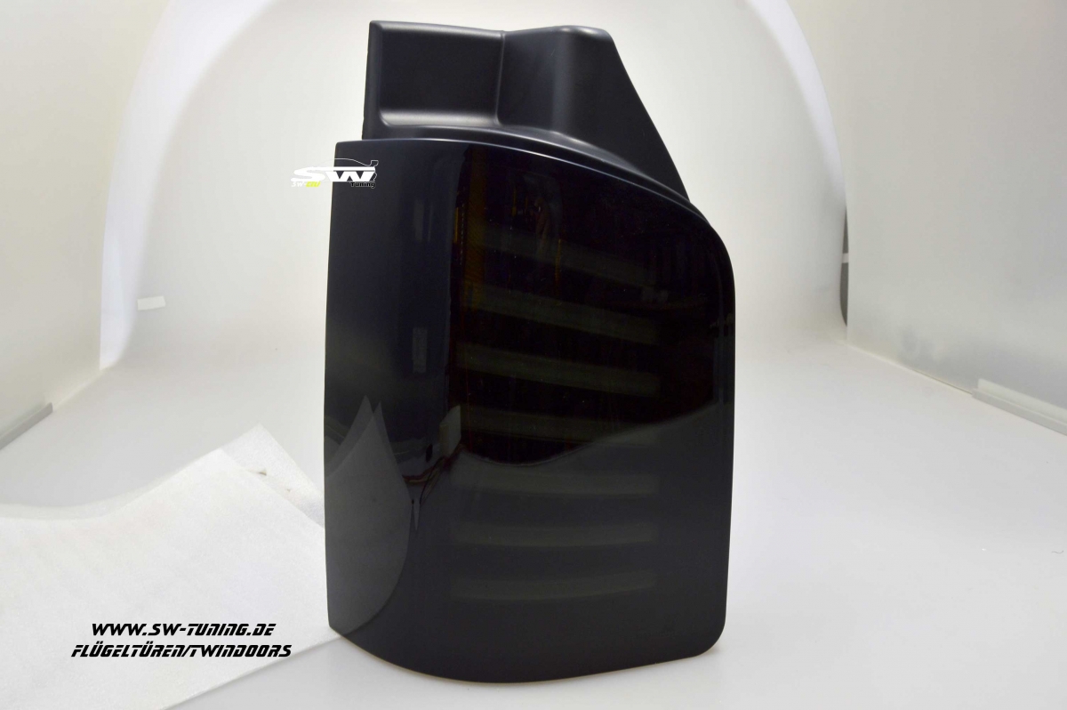 compatible with VW T5 GP & FACELIFT Type 7H / 7E Caravelle, Multivan Transporter twindoors (not singel doors). Year of construction: before facelift 2003-2009 and Facelift 2010-2015. Version: black smoke.