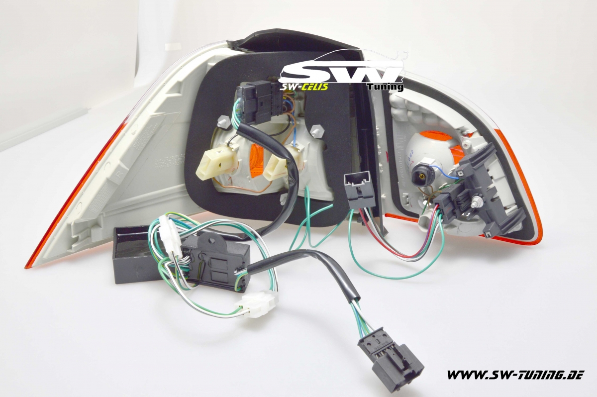 LED parking light / tail light with light guide technology also in tail lobes Brake light (P21W) LED Indicator Reversing lights (W16W) Rear fog light (H21W) incl. reflector compatible with board computer E-Approved / Certified nr. on public roads 1 set consisting of 4 parts