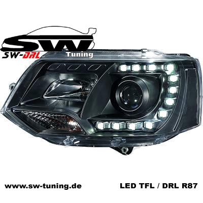 SW-DRL headlights VW T5 Facelift Type 7H GP 09-14 LED DRL R87 black