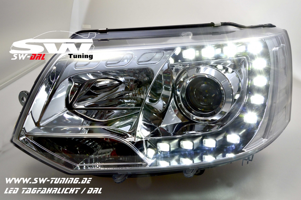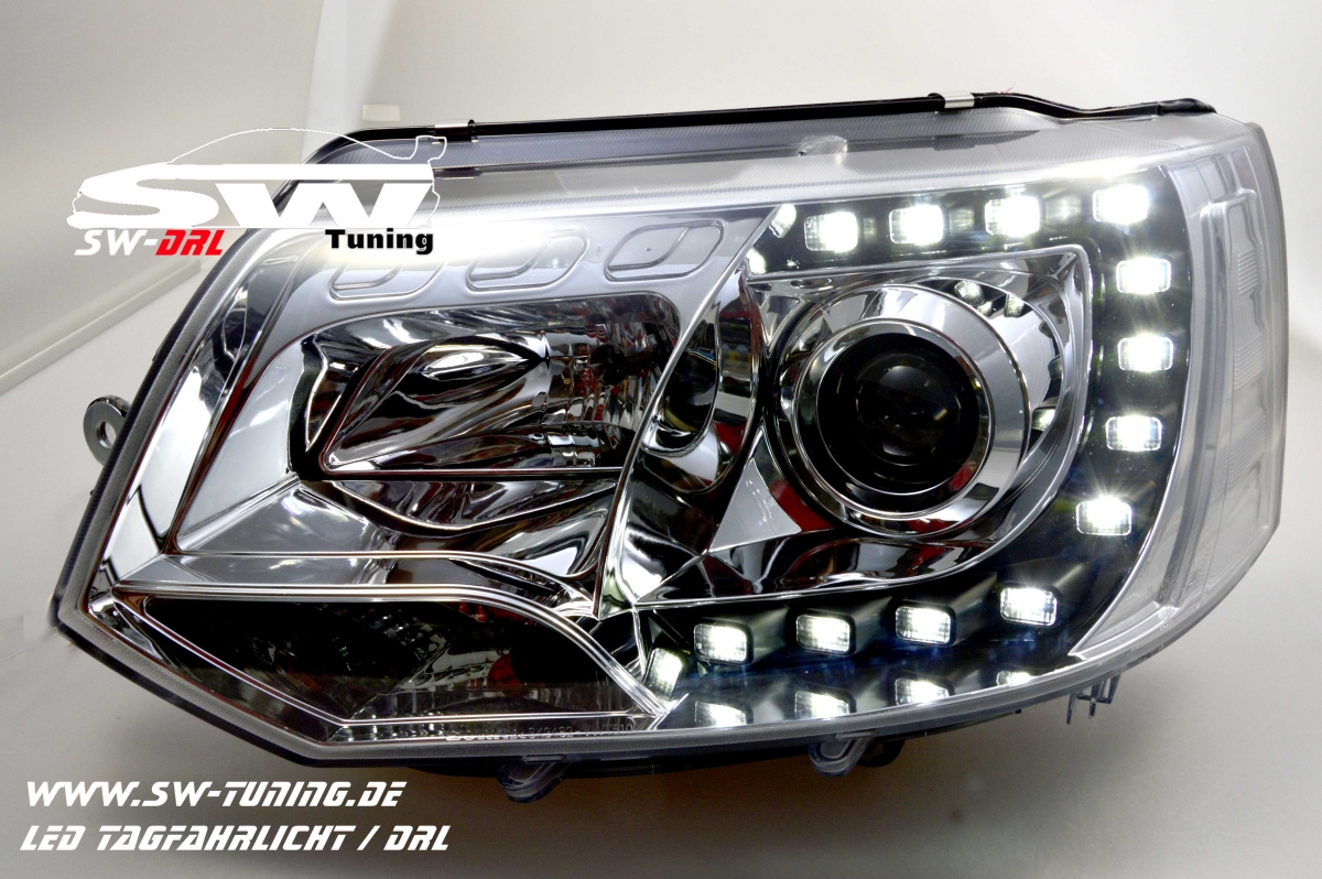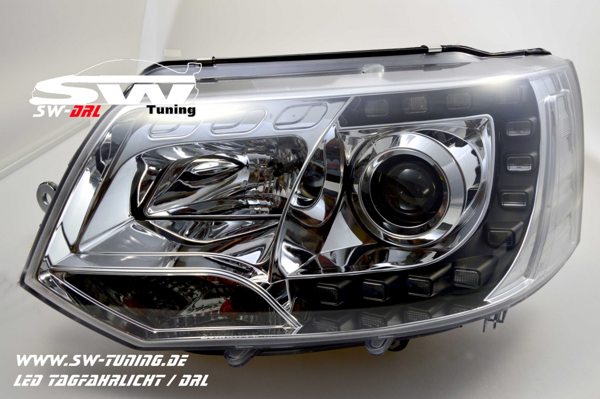 SW-DRL headlights VW T5 Facelift Type 7H GP 09-14 LED DRL R87 chrome