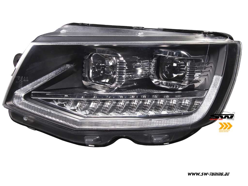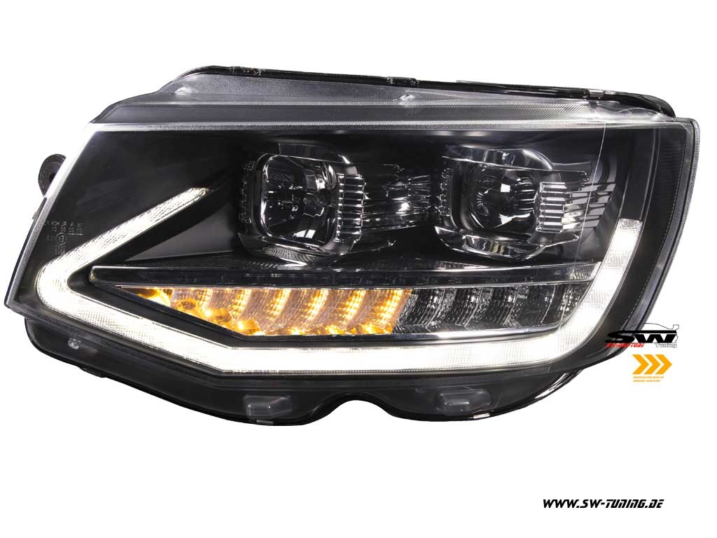 SW-DRLTube headlights VW T6 Type SG LED DRL R87 black with dynamic LED indicator