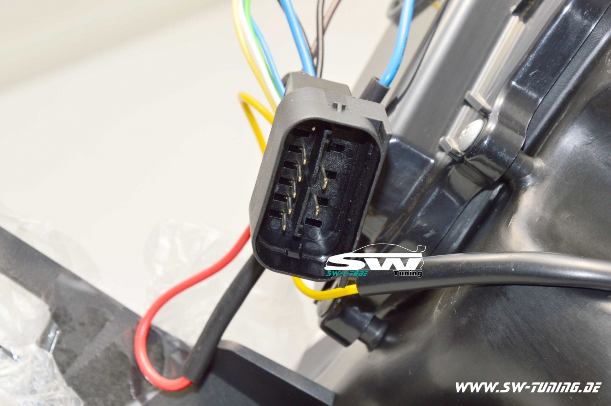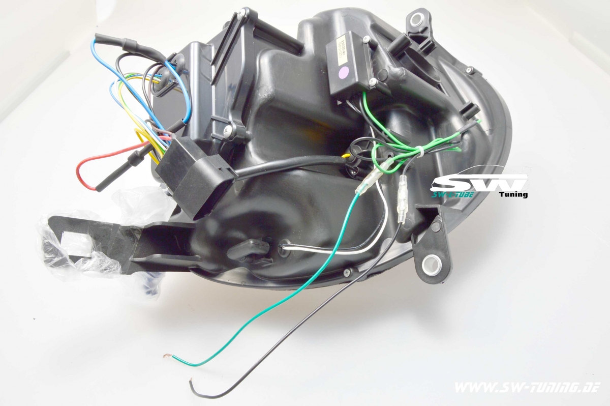 Oneblock design LED parking light in fiber optics, light bar (NO daytime running lights) electric headlamp leveling (Motor integrated) Halogen headlights with xenon-look lense high beam Bulb: Bi-Halogen H9 low and high beams behind a lens E Mark / Certified nr on public road 1 set consisting of 2 headlights