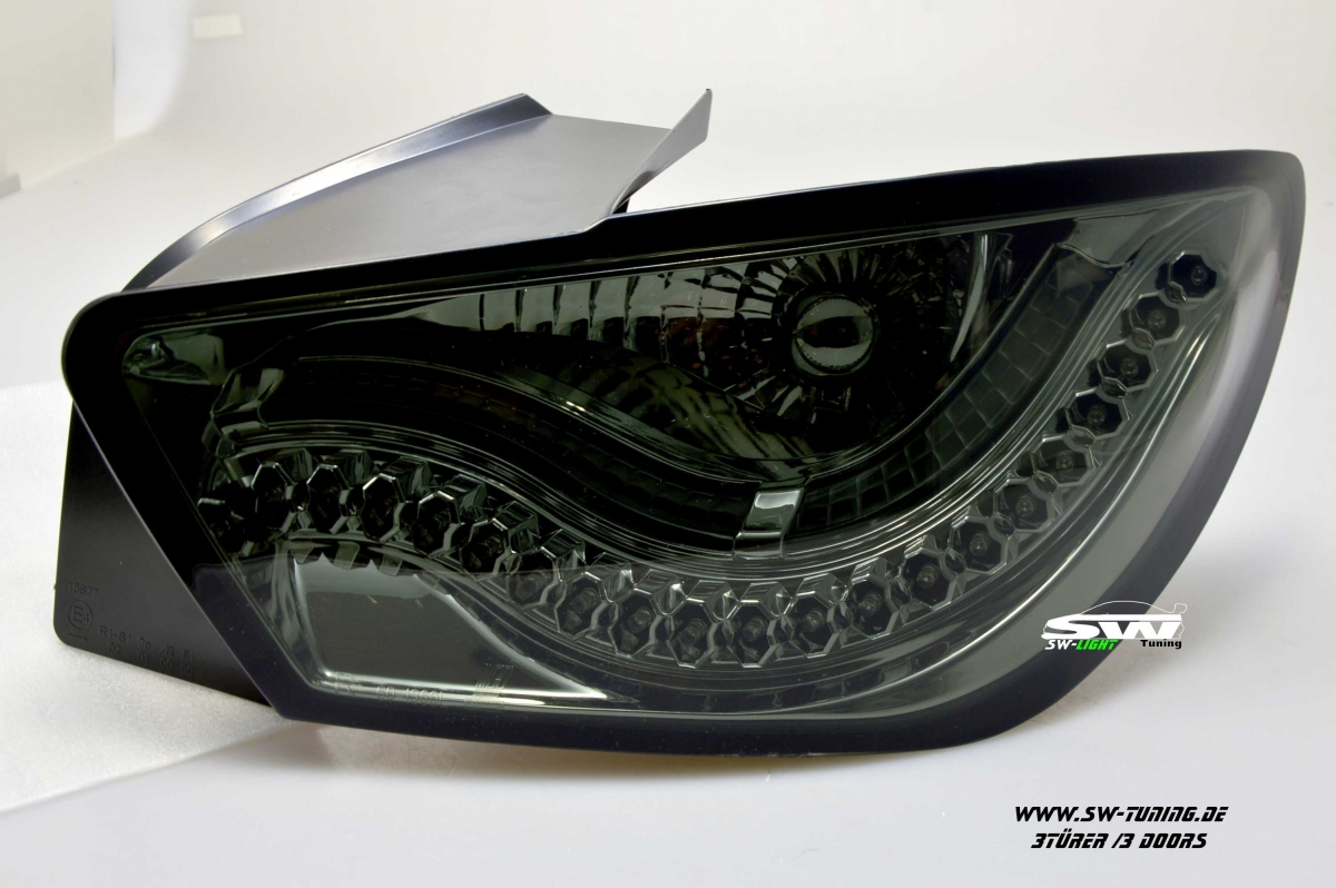 SW- LED taillights for Seat Ibiza 6J 08-11 black 3Türer passend für: Seat Ibiza 6J SC Only 3doors. Year: 04.2008-2011. Color: smoke. not suitable for vehicles with standard LED tail lights. LED parking light / tail light. LED brake light. LED indicators. Reversing lights. LED rear fog light. without built-in reflector, since it is factory installed in the bumper. compatible with on-board computer. E-Approved . including wiring harness for LED, LED bulbs contain. 1 set consisting of two tail lights.
