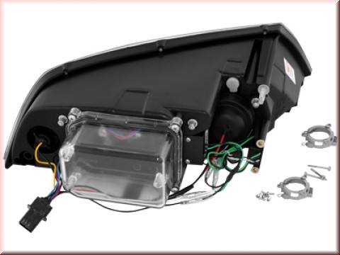 Oneblock-Design, integrated indicator. LED-Position light in daytime running light optic (no DRL). prepared for electric highness control (Using original motors). Halogenheadlights HID look lens. High beam. Fog light. Lighting: D2 base, not included warning: not for cars with bi-xenon headlights. E Mark. Set includes 2 headlights. for cars with xenon headlights.