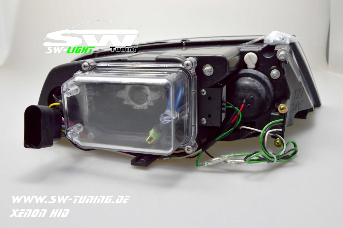 Oneblock-Design, integrated indicator. LED-Position light in daytime running light optic. prepared for electric highness control (Using original motors). HID look lens. High beam. Lighting: H1 .D1s Base not included. not for cars with bi-xenon headlights. E Mark. Set includes 2 headlights. for cars with xenon headlights more information support@sw-tuning.de.