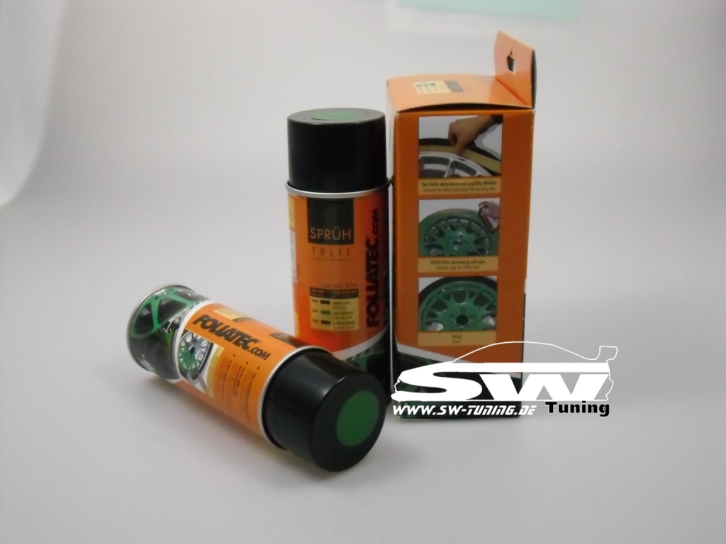 Foliatec Wheels foil-yourself spray. green mat The film is easy to apply spray on the wheels and can also be easily removed again. Individualisiern your rims, your miss in the new colors. You should look like no more after some time, just drag the slide again and can then spray another color (lying in fashion) Frabe /. This Sprühfolie can apply not only on Wheels but also be applied to other surfaces such as bumpers, mirrors, etc. The creative core can thus be allowed to freewheel. properties: Used both indoors and outdoors e.g. Wheels, bumper, etc peelable waterproof General. Processing information: The application should be done in a Clean and well-ventilated area The best processing temperature between 15-25 Celsius Crad Wheels should be cleaned for a good result smooth and thoroughly Care instructions: When cleaning in a car wash with brush or a pressure washer, it can lead to detachment of the film. In a preliminary test cleaner on an inconspicuous area on the film. Phased points simply by Sprühfolie mend zuverhindern further detachment. Regular cleaning. Scope of supply: 2x400ml in color green matt Base price: 56,19EUR/1l