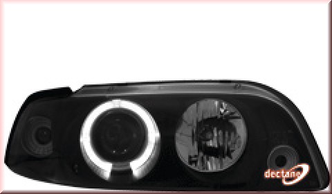 Fiat Punto 93-99 Headlights 1 position-light ring Fits: Fiat Punto type 176 Model Year: 1993-1999 Version: black Oneblock design, integrated turn signals 1 position-light ring Halogen headlights with xenon-look lense additional LED parking light Bulb: H1 E Mark / Certified nr on public road 1 set consisting of 2 headlights Manual headlight range adjustment * * According to the Road Traffic Regulation has a headlight with electric headlight range control be provided as long as the production car was equipped with this (from 91) We point out that some lights are not equipped with this function, even though they are provided with an e-mark (E Approval refers to the photometric test) Warning: Not for vehicles with original xenon headlights (except products with HID labeling in Artnr)